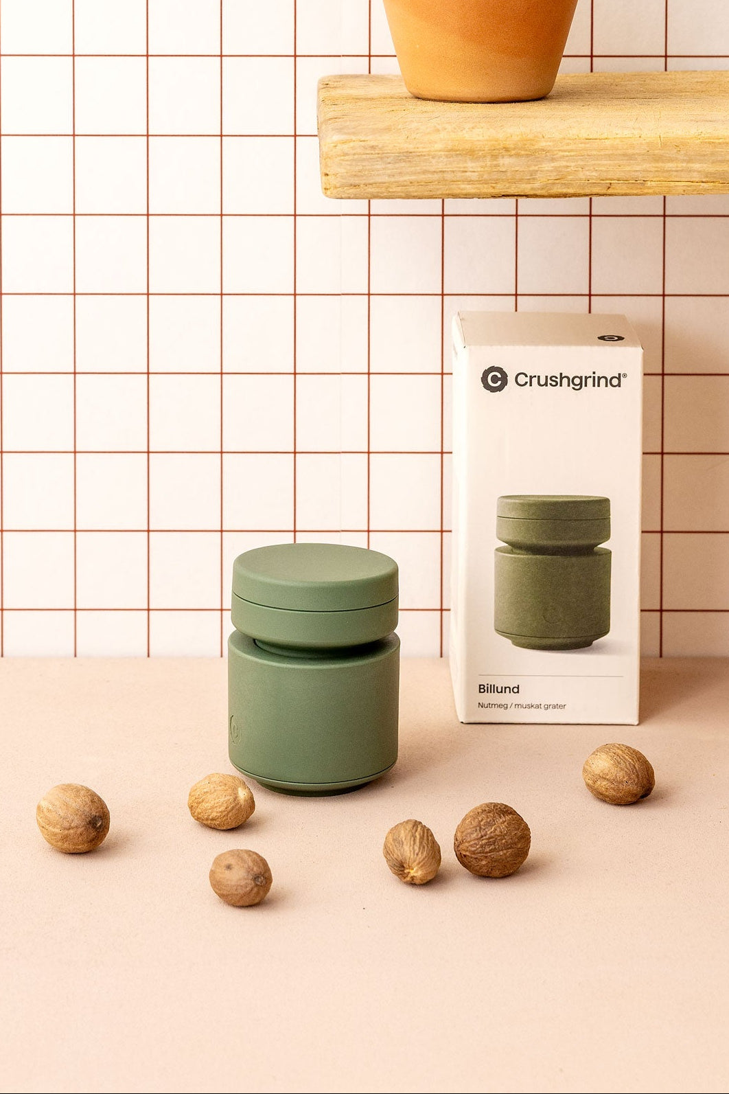 Deze molen maakt het eenvoudig om nootmuskaat te bewaren en vers te malen, waardoor je de beste smaken uit jouw nootmuskaat haalt (echt, als je versgemalen nootmuskaat nog niet hebt ontdekt: doe het!). De molen is gemaakt van biocomposietmateriaal en heeft vlijmscherpe mesjes, waarmee je harde specerijen zoals nootmuskaat makkelijk maalt. De CrushGrind® nootmuskaatmolen behoort tot de stijlvolle Billund serie.