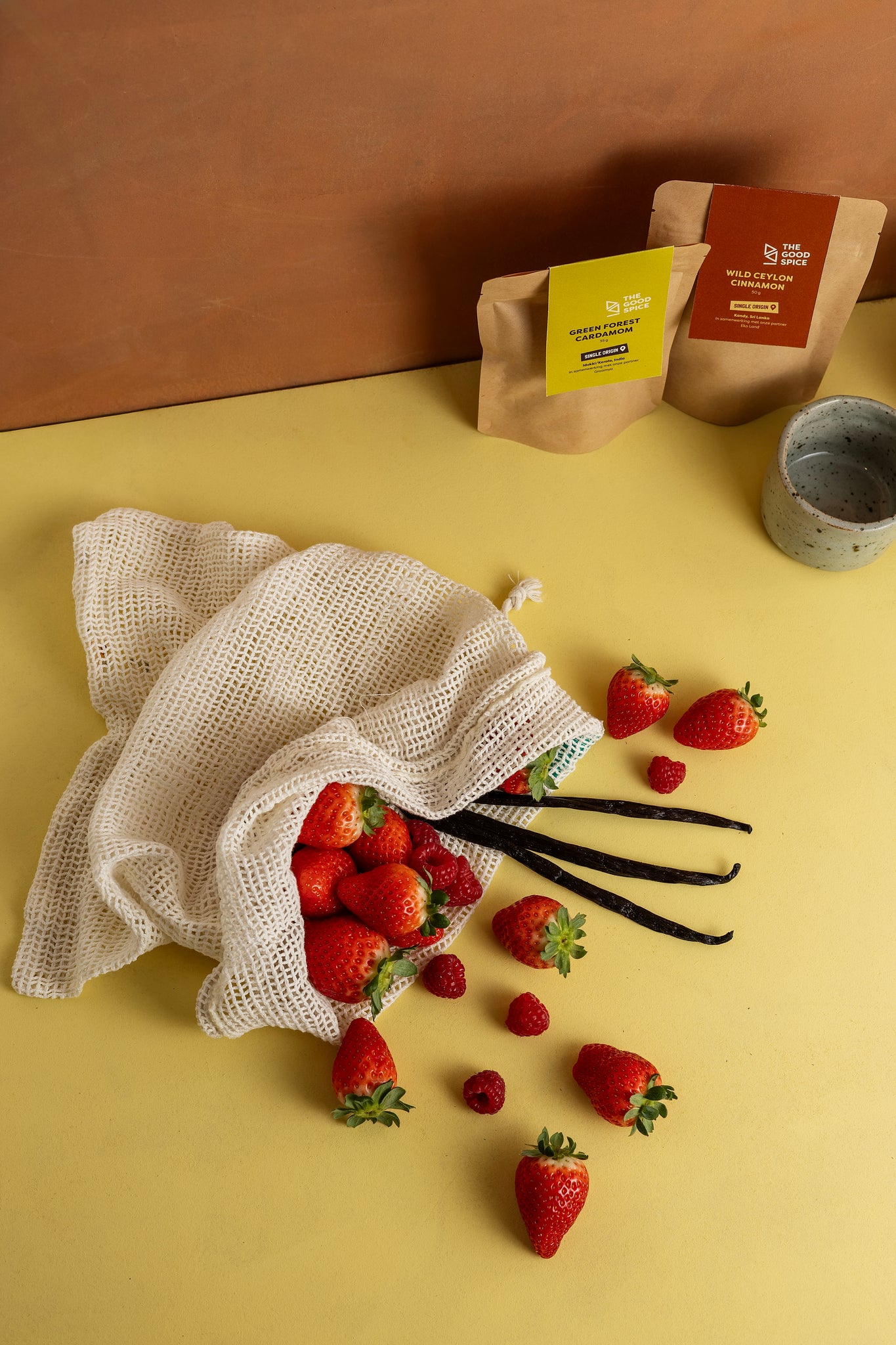 Deze vanille importeren we niet zelf; daarvoor werken we samen met ‘VanillaPoint’. Eigenaar Godfrey woont in Nederland en haalt de vanillepeulen rechtstreeks van de familieplantage in Oeganda. Deze organisatie betaalt écht eerlijke lonen en zet zich actief in voor het versterken van de lokale gemeenschap. De vanille wordt regeneratief geteeld en is volledig vrij van pesticiden. Soms doen andere partijen het al zo goed, dat we elkaar liever ondersteunen dat het dubbel doen.